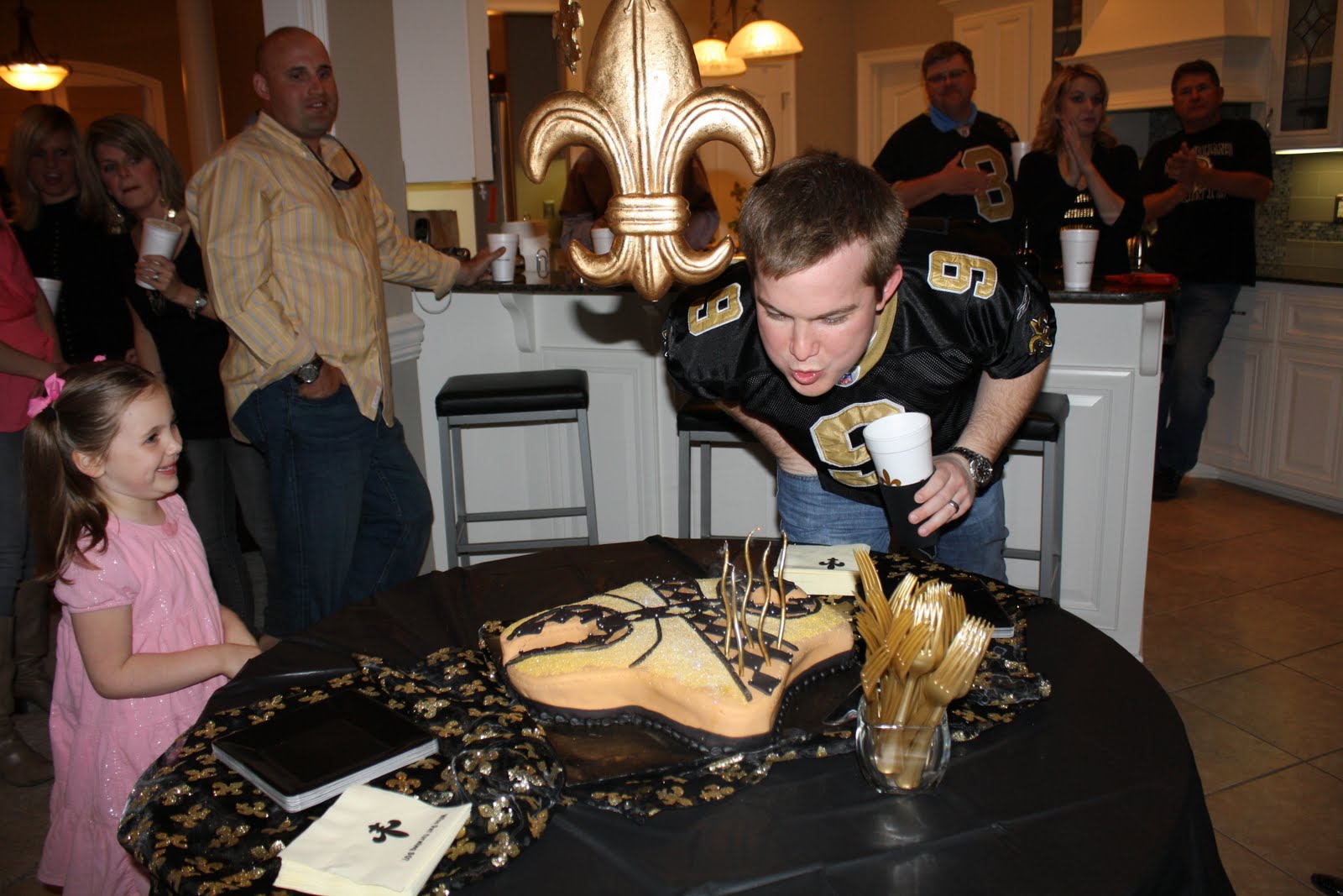 We had a surprise 30th "Who Dat" celebration for Neil tonight. It was so much fun and he was a little surprised. After weeks of preparation, I am so glad that I can actually talk to him about the party details that I have been needing to talk to him about! Things would happen, fall through, or whatever and of course, I would want to talk to my husband but I didn't want to ruin the surprise. I felt like I was being a sneaky wife because every time I acquired cash, I would put it in an envelope. I couldn't use the bank account to pay for things because he would be suspicious! Boy, I am glad all the snaking around is over! It was tough! Thanks so much to Dad for your help!