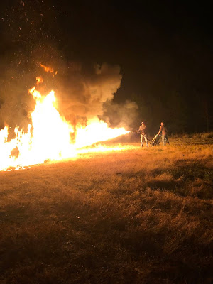 | Neil borrowed a flame thrower to start the fire! It was lit! |